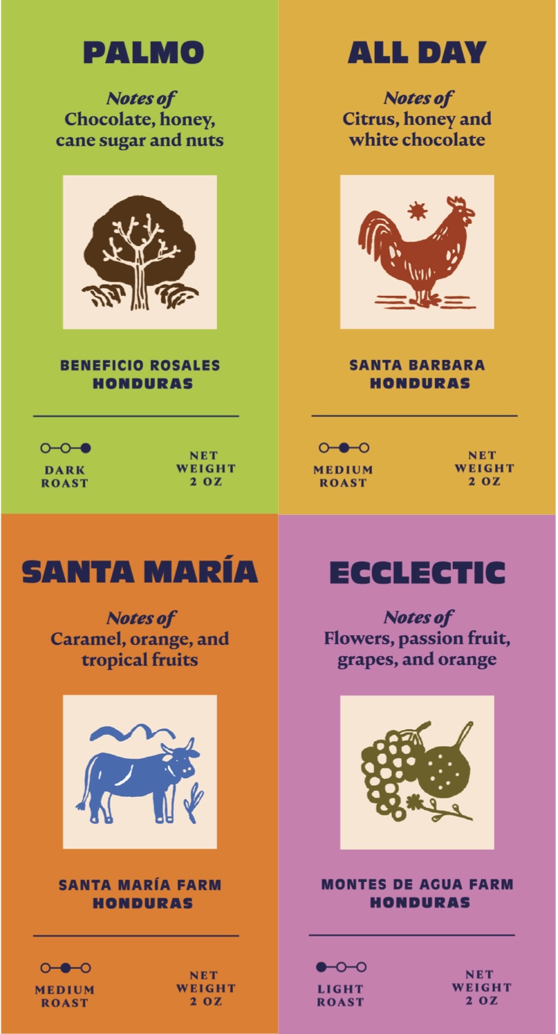 HomeGround CoffeeSample PackSample Pack$18.00 Enjoy a sample of our 4 different single origins of our Honduran specialty coffee Format Choose an optionBeansGroundClear Sample Pack quantity Buy now Description Enjoy a sample of our 4 different single origins of our Honduran specialty coffee Related products Greco $17.00 – $68.00Price range: $17.00 through $68.00 Buy now This product has multiple variants. The options may be chosen on the product page All Day $16.00 – $65.00Price range: $16.00 through $65.00 Buy now This product has multiple variants. The options may be chosen on the product page Out of stock Ecclectic $22.00 – $95.00Price range: $22.00 through $95.00 Select options This product has multiple variants. The options may be chosen on the product page